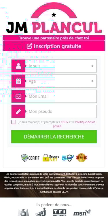 JM Plancul est pensé pour le marché français : interface en français, profils majoritairement localisés en France, et codes culturels adaptés. Cela facilite les rencontres locales et évite les faux profils étrangers souvent présents sur d’autres plateformes.